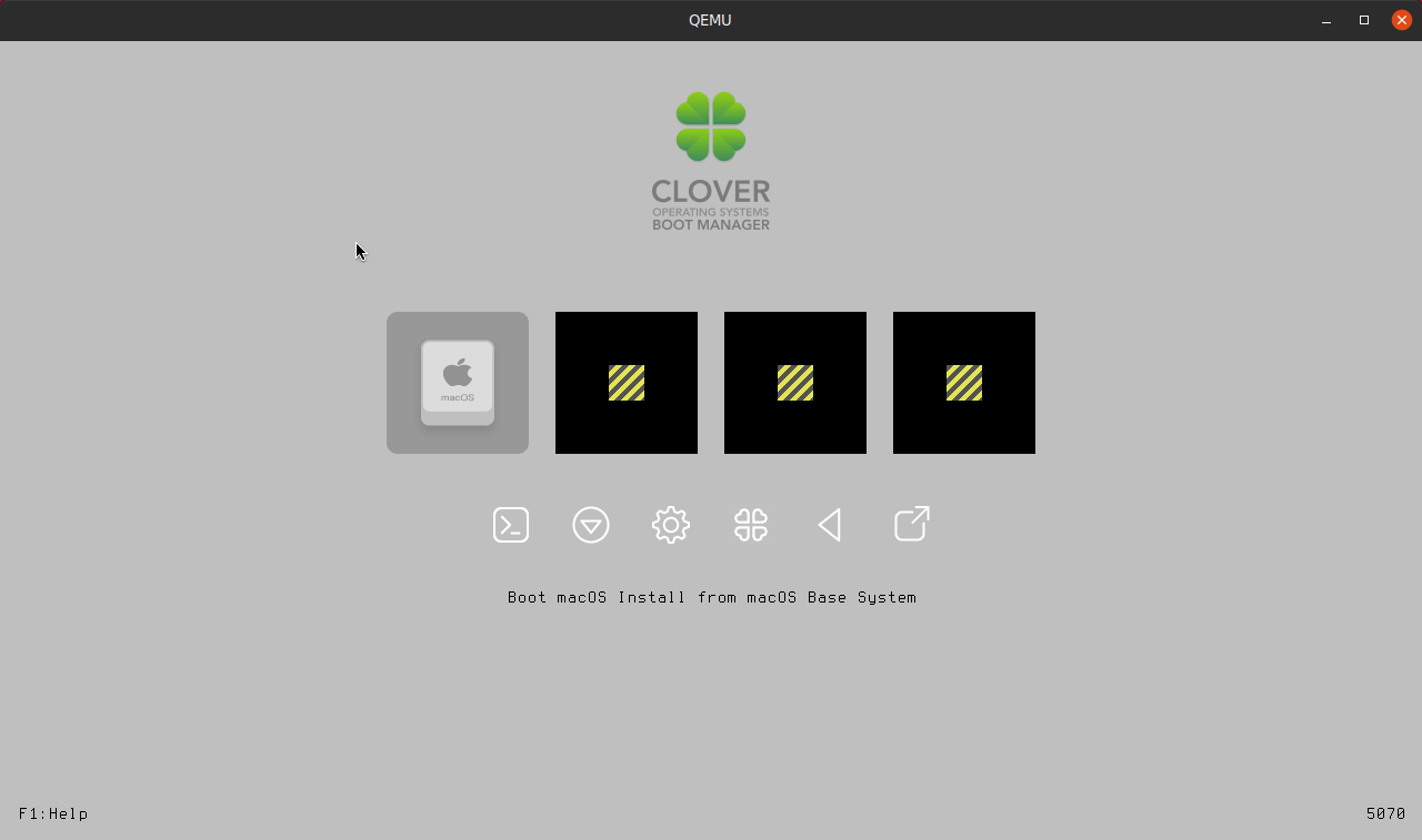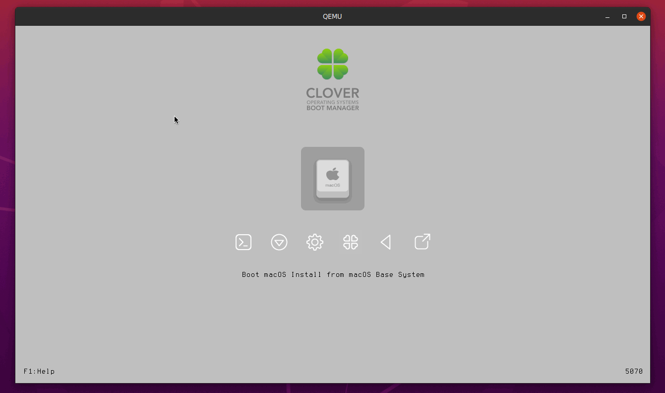 После завершения установки виртуальная машина macOS перезагрузится, в меню загрузки Clover вы увидите несколько дополнительных параметров. Используйте клавиши со стрелками влево / вправо для выбора опции Boot macOS from..., например, так ( Boot macOS from macOS , где второе название macOS это имя жесткого диска, настроенного на 4 шаге).