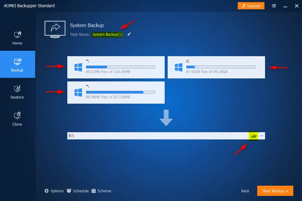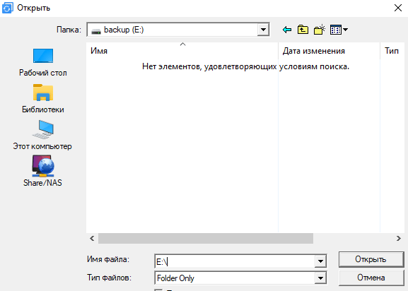 В моем примере резервная копия будет создана в разделе backup второго жесткого диска.