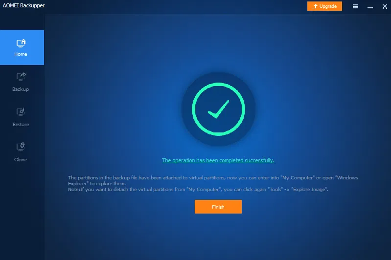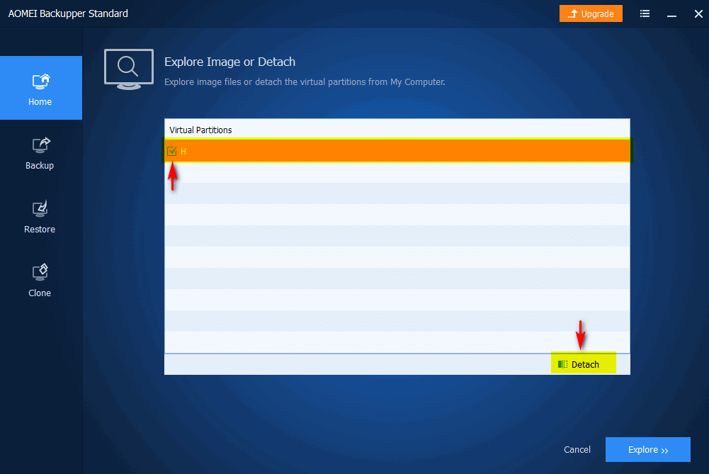 По окончании работы с образом резервной копии необходимо отключить смонтированный образ резервной копии. Для этого в разделе Tools выбрать Explore Image, выбрать виртуальный раздел и нажать кнопку Detach (отсоединить)
