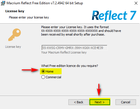 В окне License key при установке программы для личного использования установить радиокнопку Home и нажать Next.