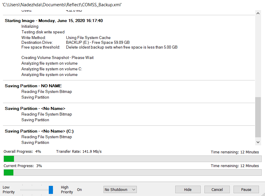 Запустится процесс создания резервной копии. Его длительность зависит от объема раздела.