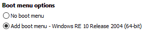 При выборе Windows Boot Menu в разделе Boot menu options доступно 2 настройки, которые позволяют добавить в меню загрузки Windows Macrium Reflect System Recovery (Add boot menu) или удалить из меню загрузки (No boot menu). Для выполнения операции нажать кнопку Build.