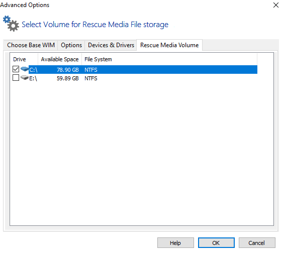 При необходимости изменить раздел для хранения файлов Macrium Reflect Rescue Media, можно воспользоваться вкладкой Rescue Media Volume.