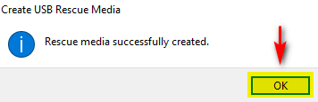 После успешного создания загрузочного носителя нажать кнопку ОК и закрыть окно Macrium Rescue Media Builder.