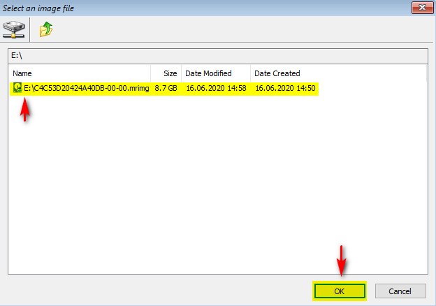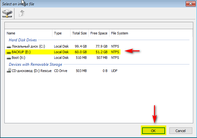 Далее необходимо выбрать раздел, где расположена резервная копия и нажать ОК.