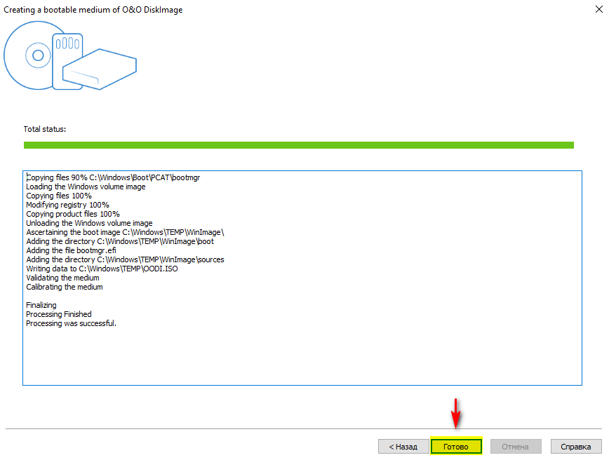 После успешного завершения создания загрузочного диска нажать кнопку Готово.