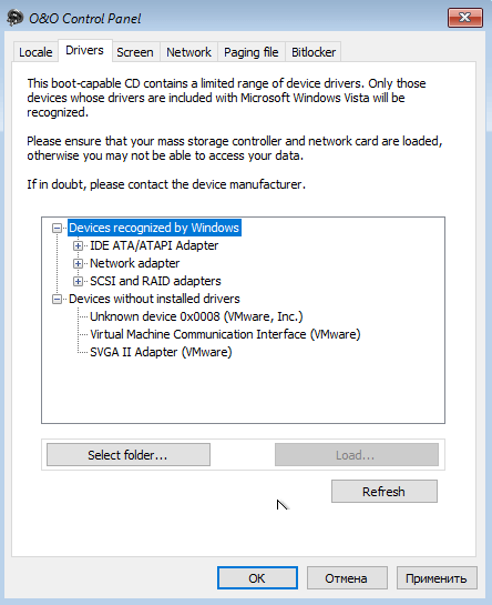 В области Add driver можно добавить драйвера, которые будут использованы при загрузке с носителя.
