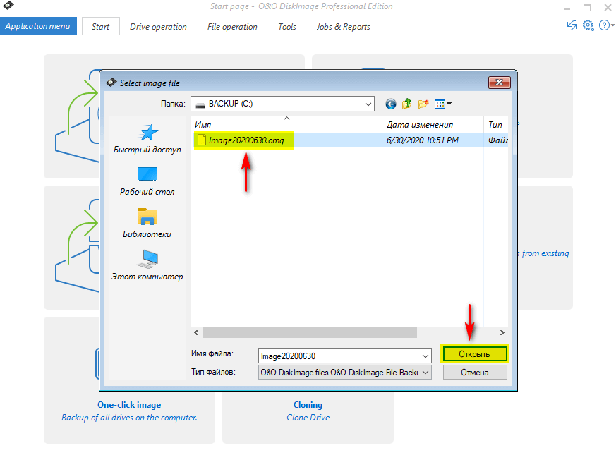 Восстановление резервной копии с помощью загрузочного носителя O&O DiskImage 15 Pro