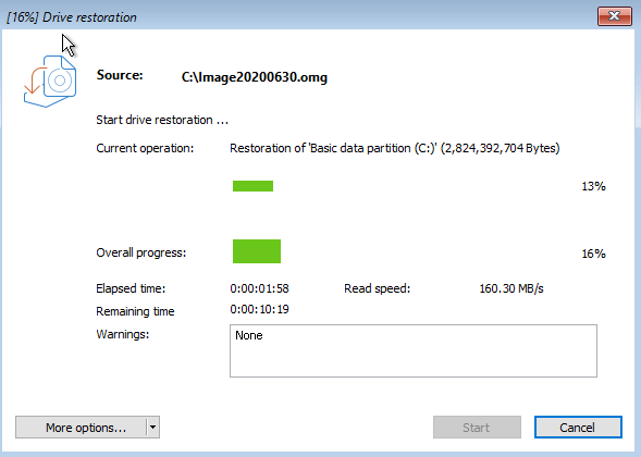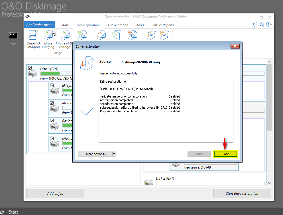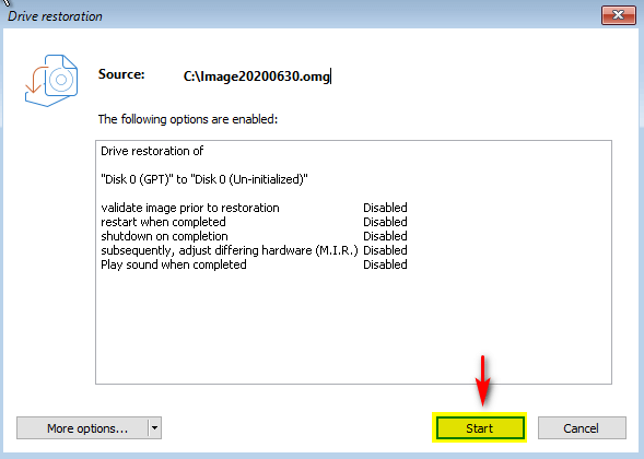 По окончании процесса восстановления резервной копии нажать кнопку Close, перезагрузить компьютер (Start > Restart) и выставить приоритет загрузки в BIOS/UEFI в исходное состояние.