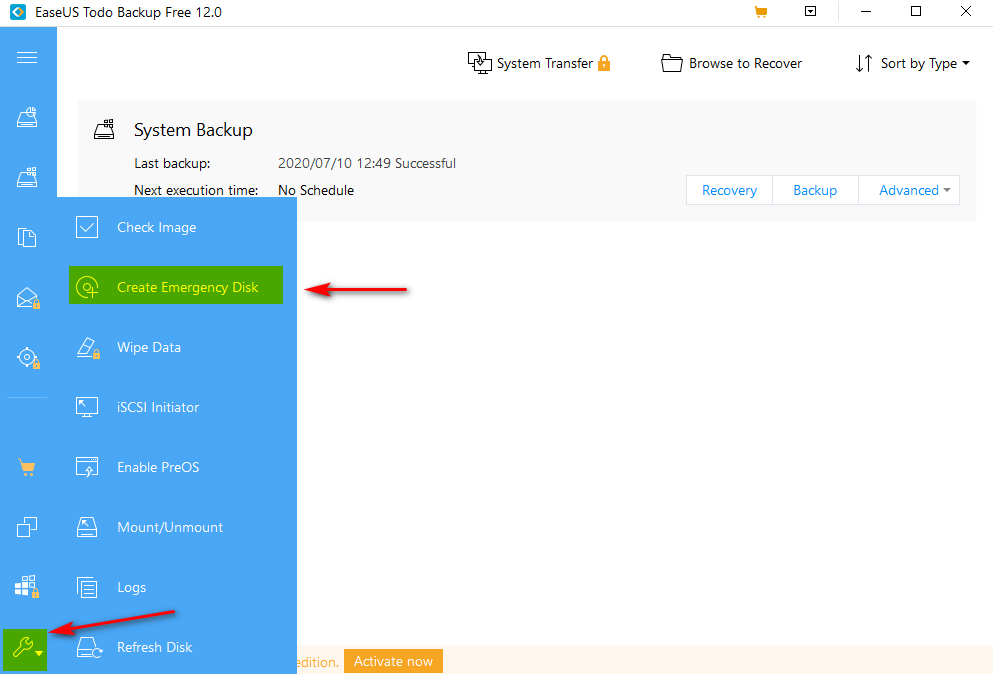 - Подготовка загрузочного носителя EaseUS Todo Backup Free