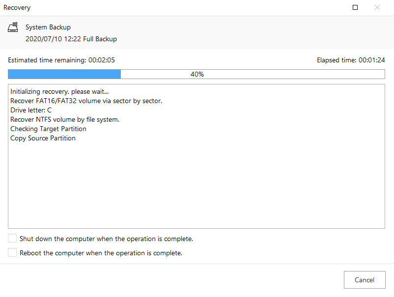 Рис.13 Процесс восстановления резервной копии с помощью загрузочного носителя EaseUS Todo Backup
