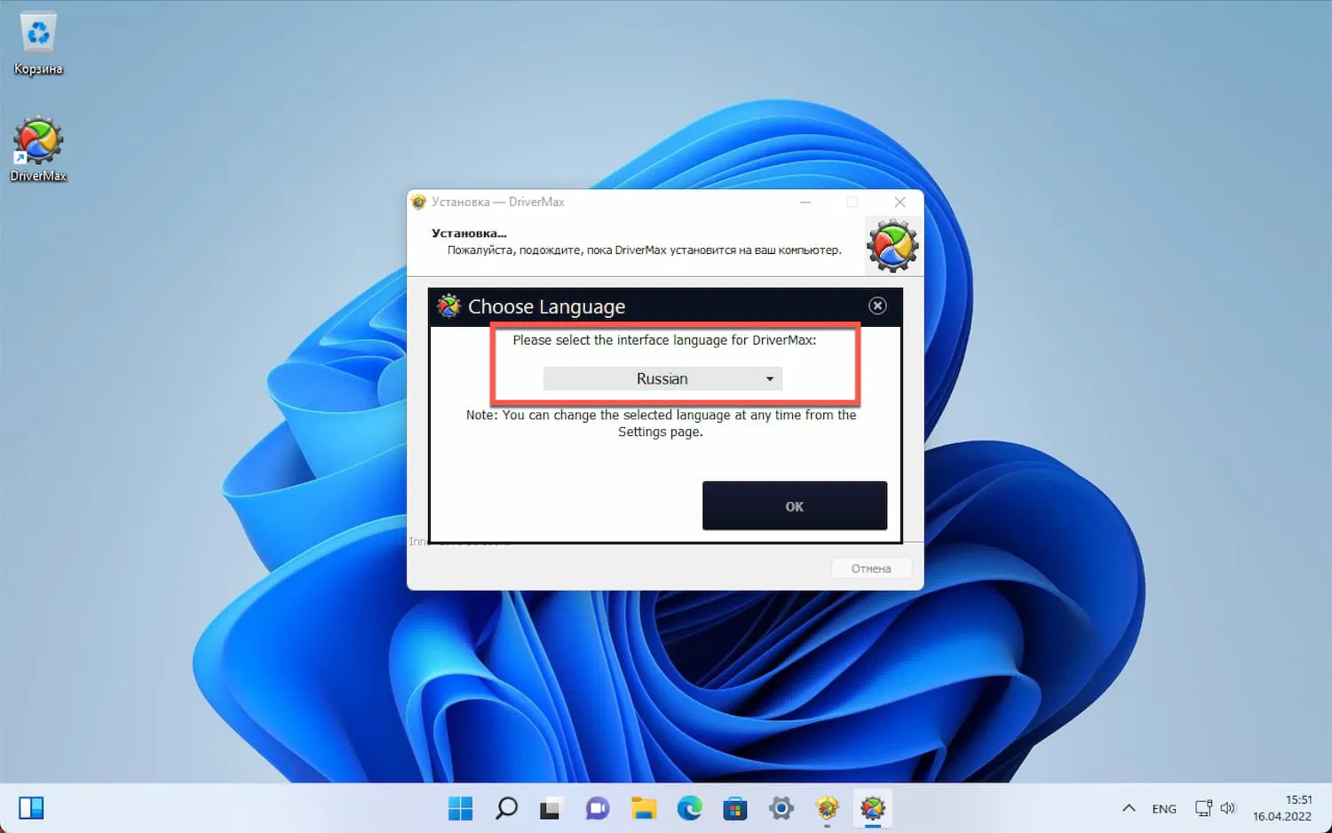 - Во время установки укажите язык интерфейса Russian, чтобы программа работала на русском языке.