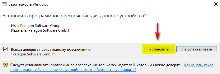 - Во всплывающем окне установки программного обеспечения для данного устройства нажать кнопку Установить.