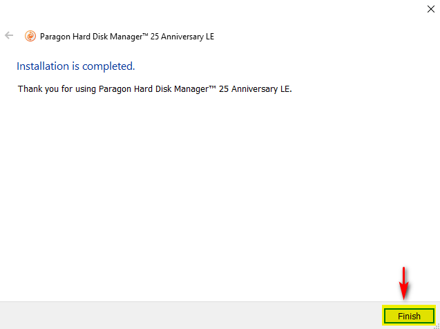 - По окончании инсталляции нажать кнопку Finish и запустить приложение Paragon Hard Disk Manager