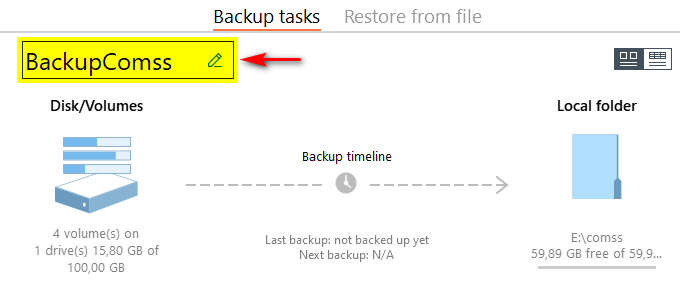 Рис.12 Изменение названия задачи резервного копирования