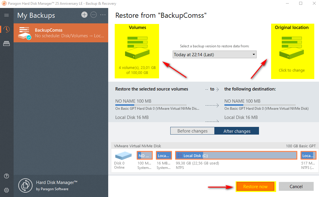 - Нажать кнопку Restore now.