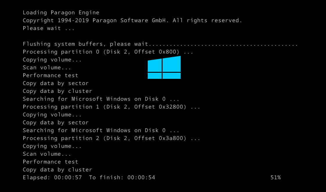 Запустится процесс создания резервной копии. Его длительность зависит от объема раздела.