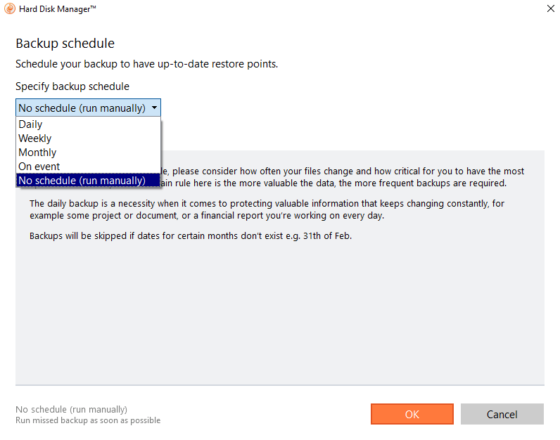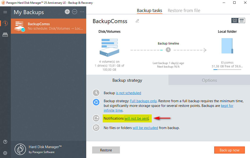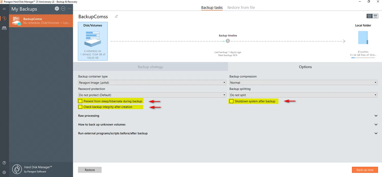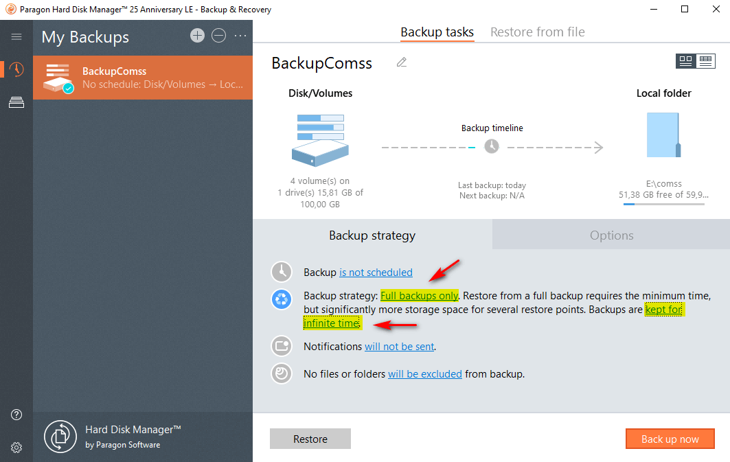 В раскрывающемся списке Backup strategy можно указать методы резервного копирования. Paragon Hard Disk Manager позволяет выполнять следующие варианты резервного копирования.