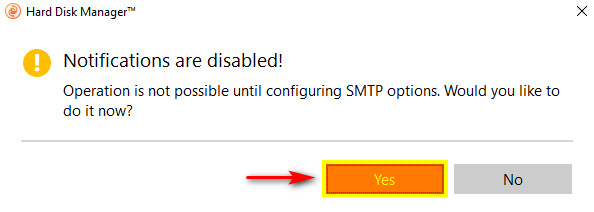 Во всплывающем окне Notifications are disabled для настройки параметров почты, нажать кнопку Yes.