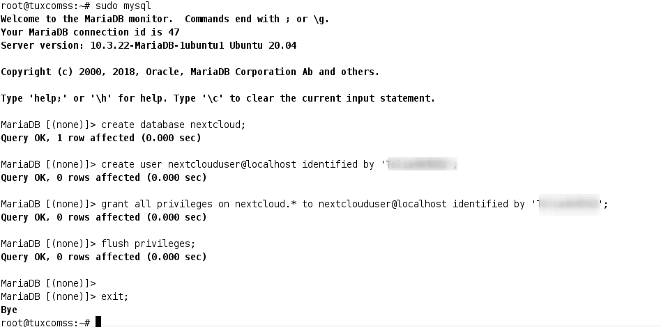 create database nextcloud;