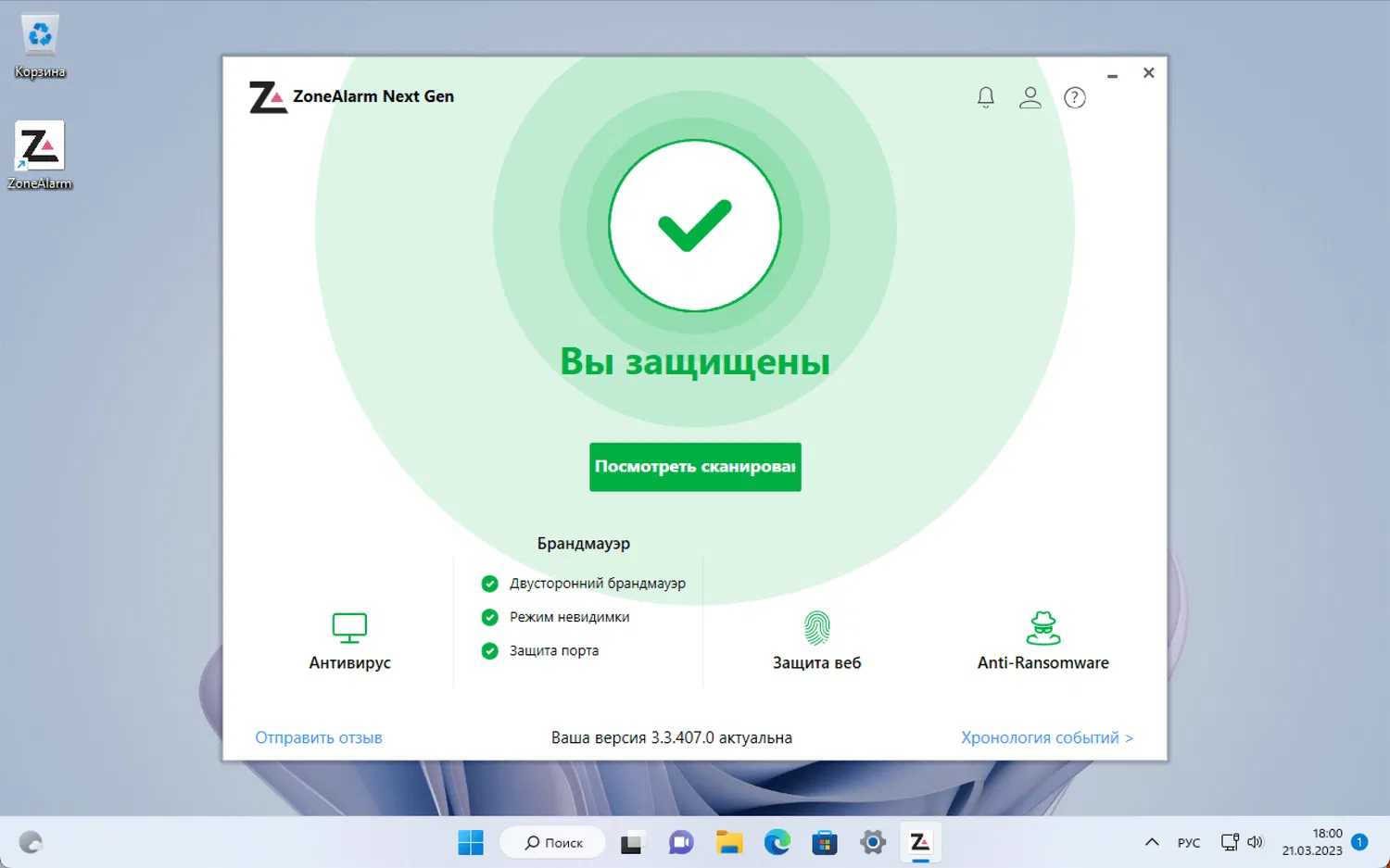 1. Скачайте и установите ZoneAlarm Extreme Security NextGen на ваш компьютер, используя следующий установочный файл: