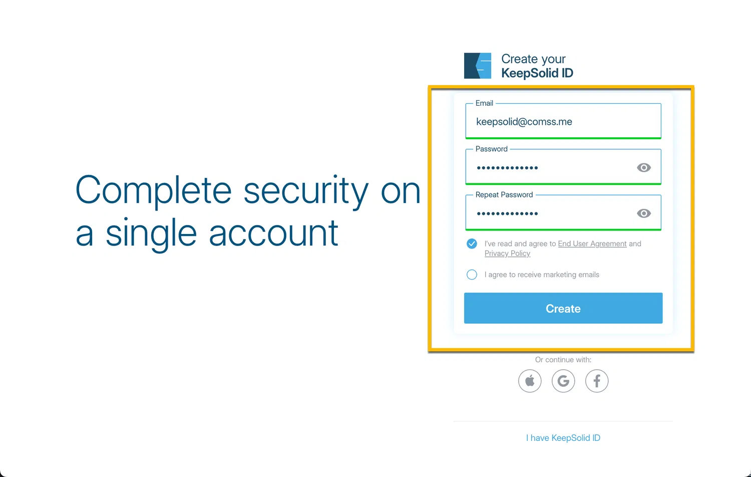 - Создайте новый KeepSolid ID на официальном сайте и подтвердите вашу учетную запись по электронной почте (или войдите в существующий аккаунт).