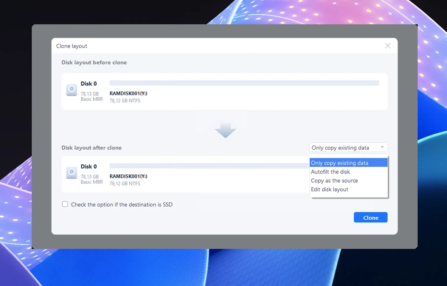 - Клонирование HDD, SSD и внешних дисков.