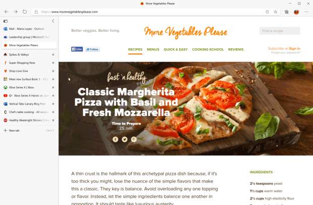 В марте 2020 года компания Microsoft рассказала о своих планах добавить в Microsoft Edge на Chromium вертикальные вкладки. С августа вертикальные вкладки были замечены в Edge Canary, а 27 октября они появились в Dev-версии Edge.