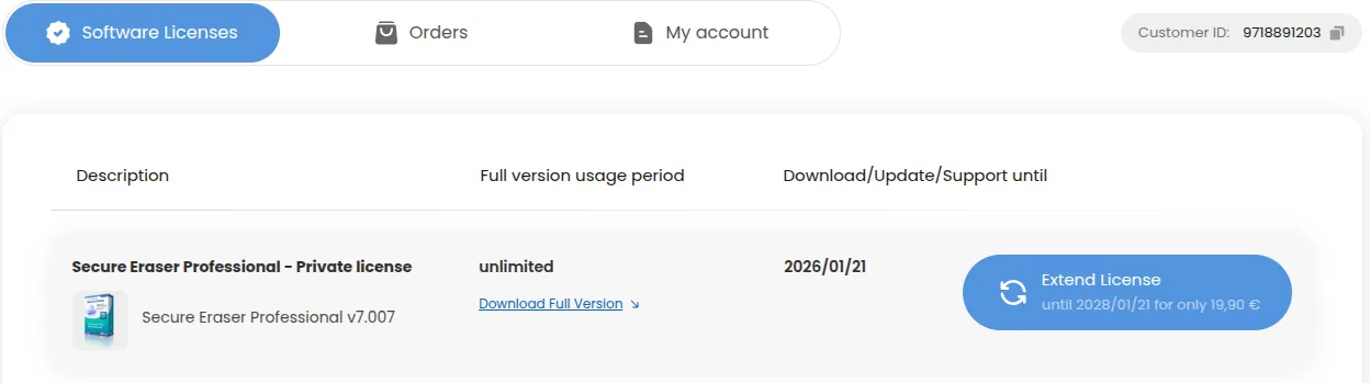 - Предлагается пожизненная лицензия Secure Eraser Professional только для домашнего использования.