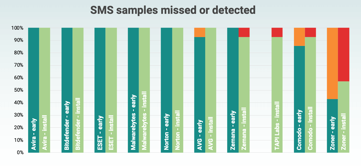 Тестирование подтвердило, что большинство мобильных антивирусов используют различные методы обнаружения до и после установки. Это объясняется доступом к различному набору метаданных в случае с файлом на SD-карте и в случае с установленным приложением.