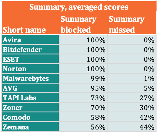 В тестировании, проводившемся во 3-ем квартале 2020 года, большинство известных крупных вендоров показали идеальный или близкий к идеальному результат при обнаружении реальных угроз. Для пользователей это означает богатый выбор продуктов, причем некоторые лидирующие решения распространяются бесплатно. В будущем важным приоритетом выбора могут оказаться дополнительные функции, такие как VPN, родительский контроль, единая подписка для ПК и мобильных устройств и др.