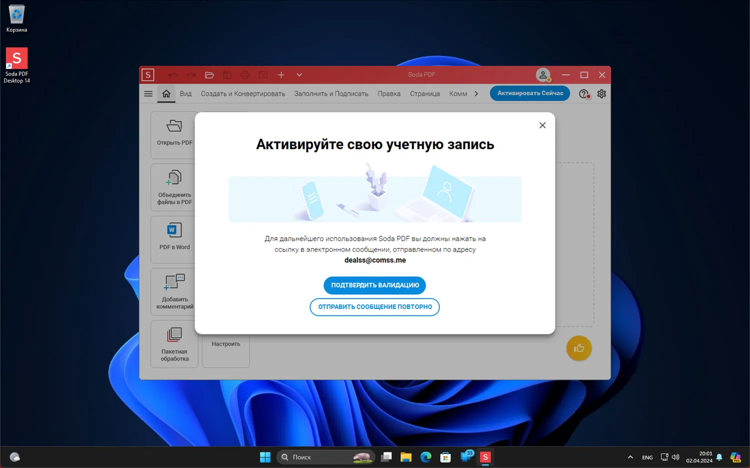 Для получения бесплатной лицензии Soda PDF Standard для Windows на 1 год выполните следующие действия: