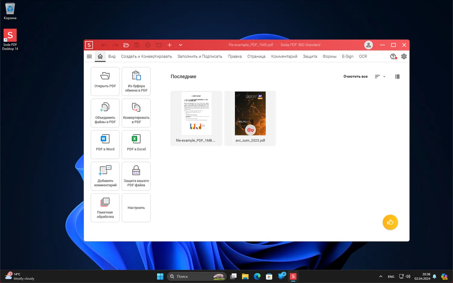 Soda PDF 14 Standard предлагает разнообразный набор инструментов для работы с PDF-файлами, включая создание, конвертацию, редактирование.