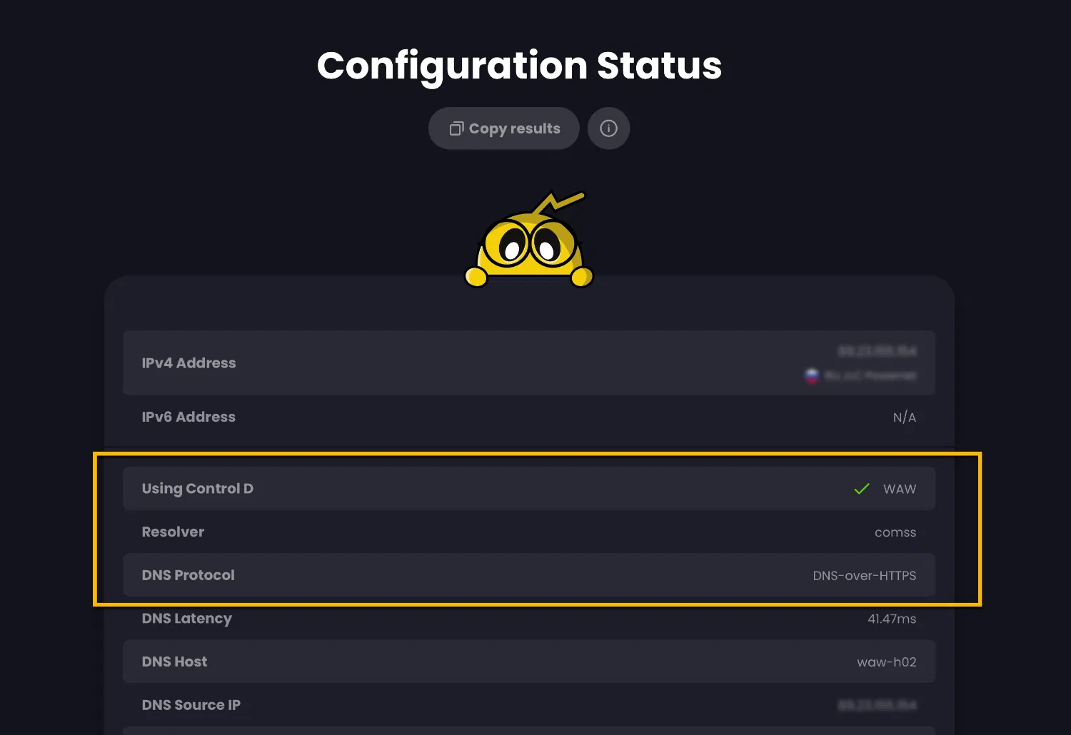 - Вы можете проверить правильную работу добавленного DNS сервера на сайте Control D.