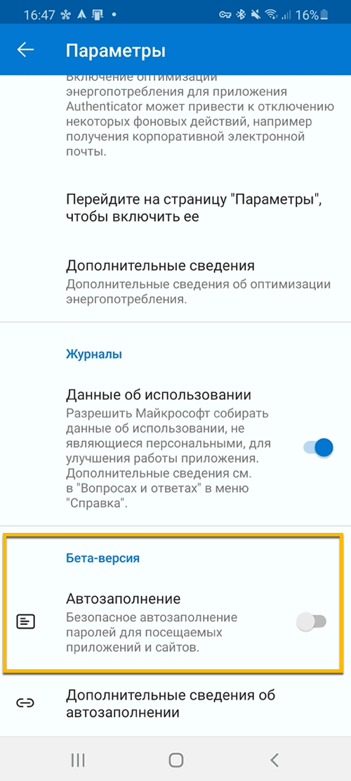 Чтобы использовать новую функцию в Microsoft Authenticator, вам нужно включить опцию Автозаполнение в разделе Бета-версия настроек приложения, выполнив следующие шаги: