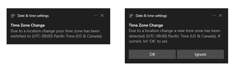 Основываясь на обратной связи, Microsoft сделала пару небольших улучшений для пользователей, которые используют опцию "Автоматически устанавливать часовой пояс" в разделе Дата и время меню Параметры > Время и язык: