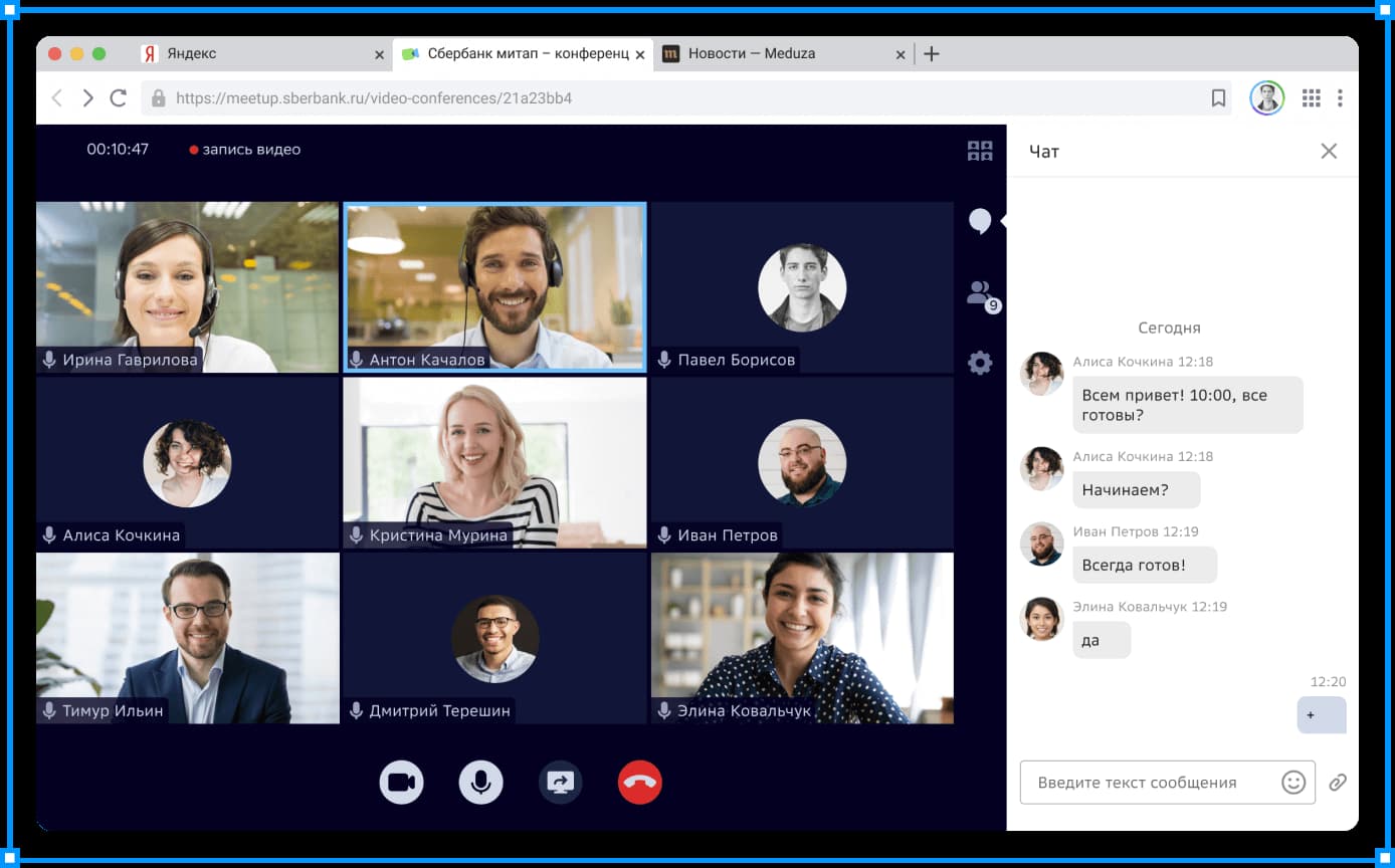 Подключиться к сервису «СберМитап» можно по ссылке, аналогично сервису «Провести собрание» компании Microsoft. Установка дополнительных программ не требуется.