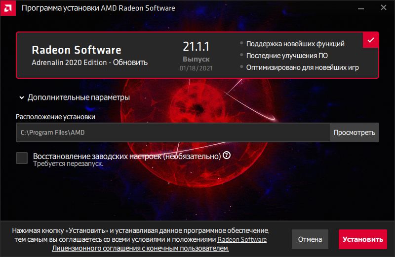Необязательное обновление драйверов AMD Radeon Optional 21.1.1 для Windows 10 и Windows 7 доступно в рамках линейки программного обеспечения Radeon Adrenalin 2020 Edition.