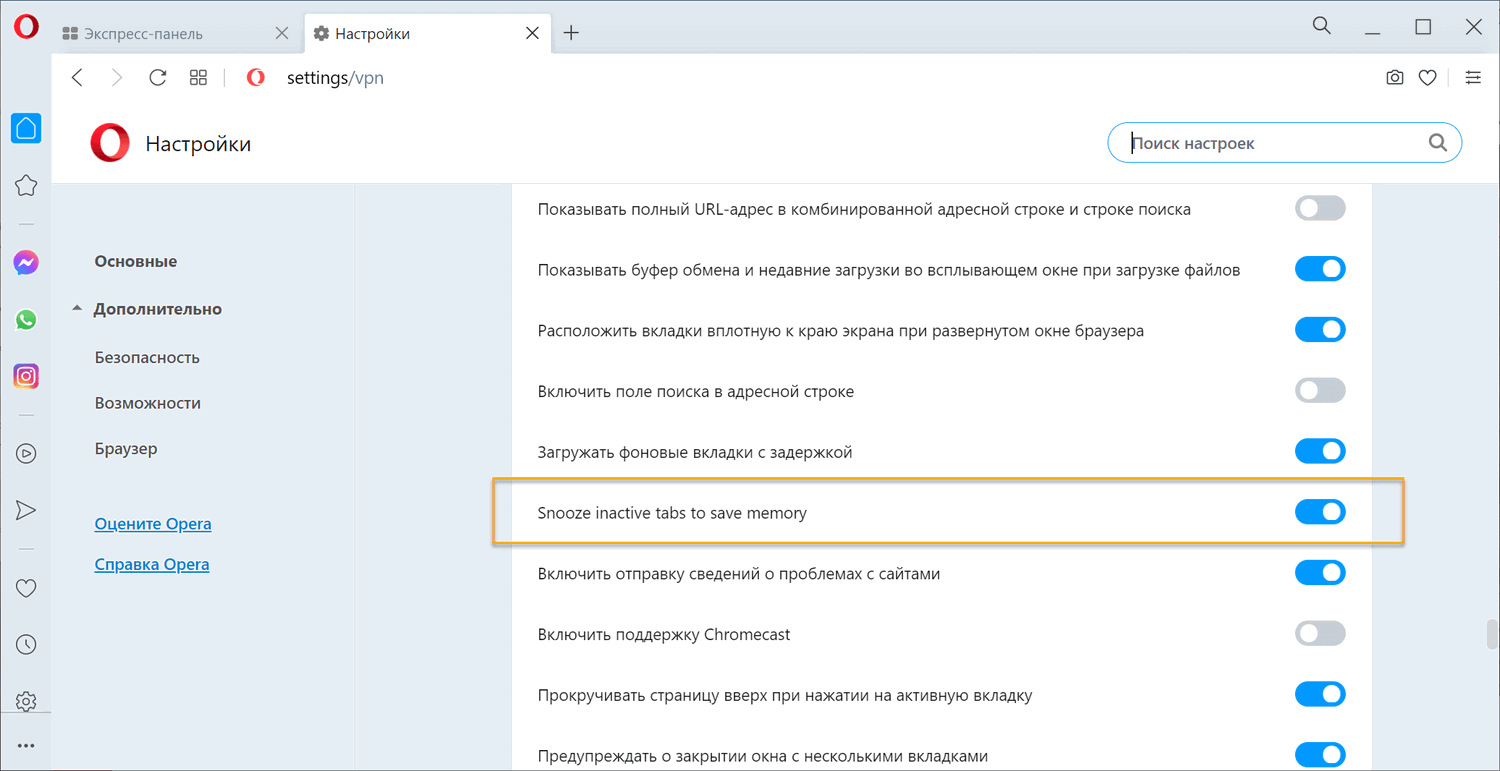 - Microsoft Edge поддерживает Tab Sleeping («Спящий режим»).