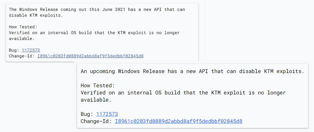 Новый релиз Windows, получит новый API, который позволит отключать KTM эксплойты.