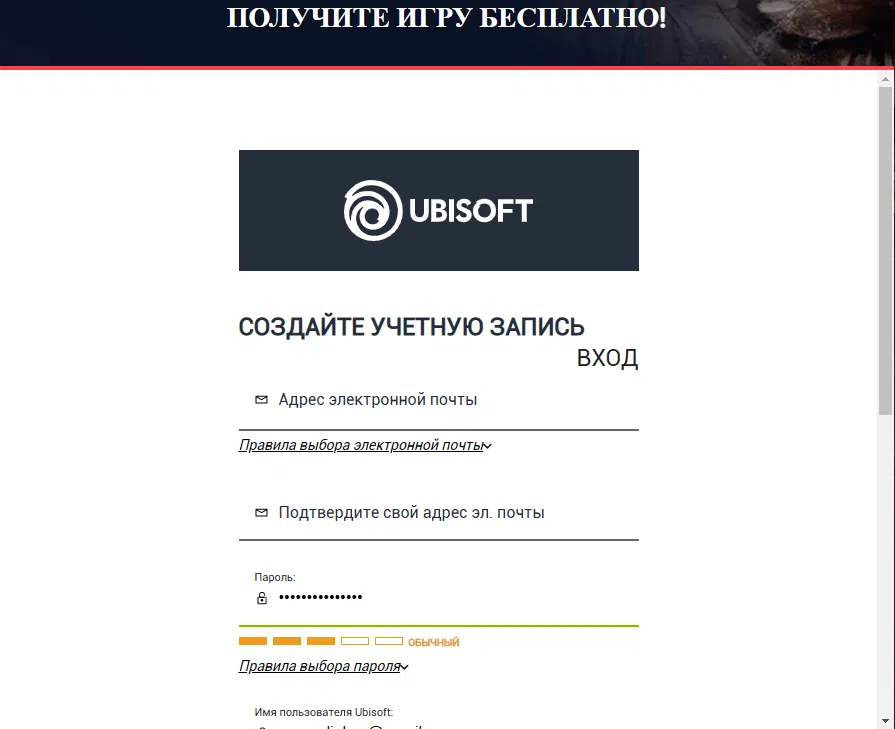 2. Если у вас отсутствует аккаунт цифрового магазина Ubisoft Store, то выполните регистрацию.