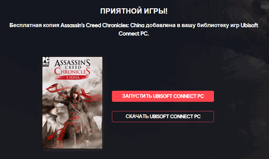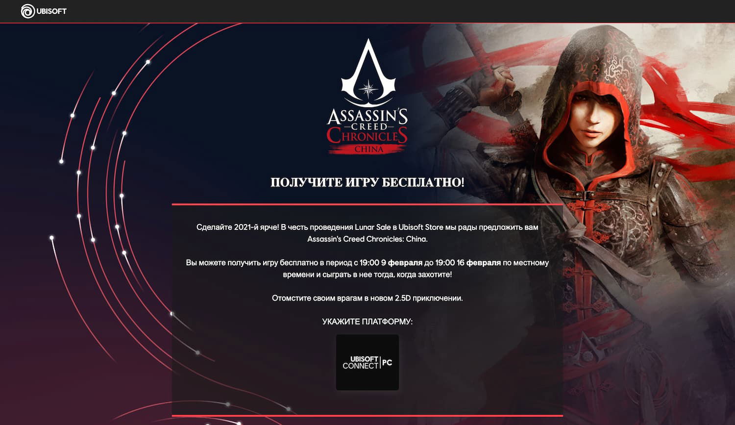 Для получения бесплатной лицензии на игру Assassin’s Creed Chronicles: China выполните следующие действия: