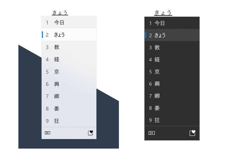 IME – Input Manager Editor (рус. «Редакторы метода ввода») является фундаментальным для ввода восточноазиатских языков, и использует то, что Microsoft называет "окно кандидата", которое позволяет пользователям эффективно вставлять символы. В новой сборке Windows 10 представлено обновленное окно фраз кандидатов для «Редакторов метода ввода» (IME), которое получило современный дизайн на основе принципов Fluent Design с поддержкой темной темы, оптимизированный размер шрифтов, быстрый доступ к эмодзи и улучшенную производительность ввода.