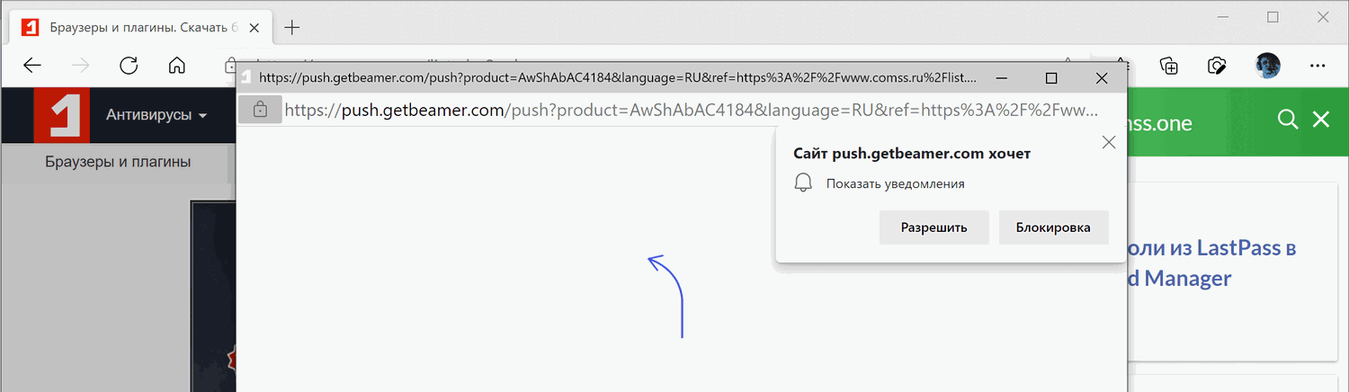 Корпорация Microsoft постоянно отслеживает уровень принятия уведомлений пользователями, браузер случайным образом отображает полные запросы уведомлений для всех сайтов в рамках процесса измерения.