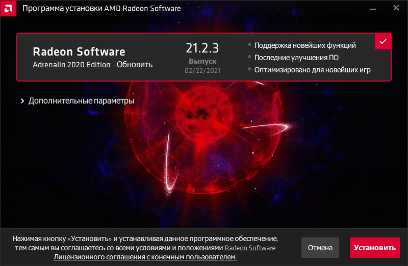 Для драйвера Adrenalin 2020 Edition версии 21.2.3 Optional доступны установочные файлы для компьютеров и ноутбуков под управлением 64-битных операционных систем Windows 10. В пакет установки входит драйвер версии 20.45.35.03 (Windows Driver Store Version 27.20.14535.3005). Также до версии 21.2.3 была обновлена утилита AMD Driver Autodetect.
