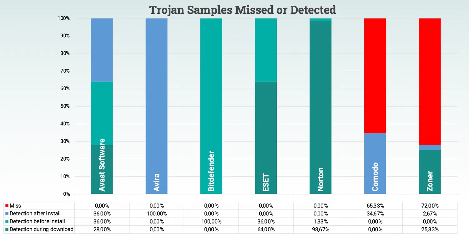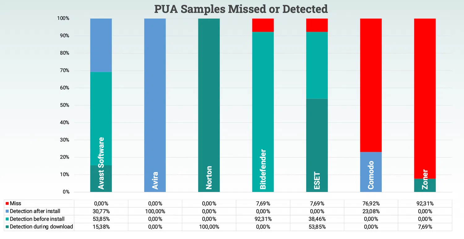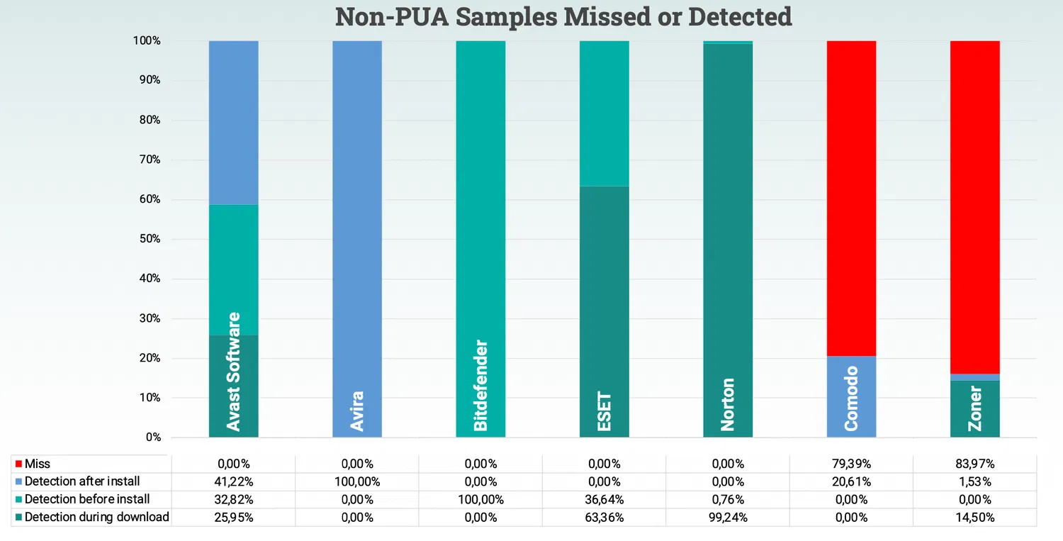 Чем раньше антивирус обнаруживает угрозу, тем лучше он работает с точки зрения пользователя. Тем не менее, учитывая, что даже успешная установка вредоносного ПО может быть исправлена, при условии, что пользователь предупрежден до первого нажатия на значок программы и обнаружение происходит вскоре после установки, тестовый пример засчитывается как "Пройден" во всех сценариях, где антивирус выводит предупреждение пользователю.