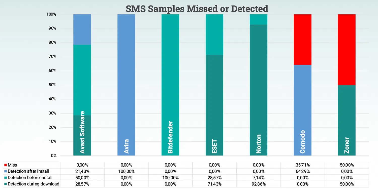 Тестирование подтвердило, что большинство мобильных антивирусов используют различные методы обнаружения до и после установки. Это объясняется доступом к различному набору метаданных в случае с файлом на SD-карте и в случае с установленным приложением.