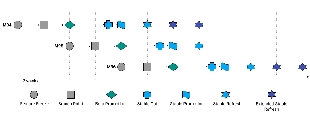 Конечно, не все производители браузеров в точности следуют графику релизов Chrome. Тем не менее, релизы связаны с развитием Chromium. Еще один возможный вариант — отойти от графика Chrome, но отдельно выпускать патчи безопасности по мере их доступности.