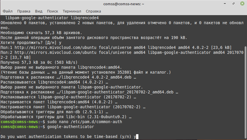 На этом установка двухфакторной аутентификации в Linux Mint и Ubuntu завершена.
