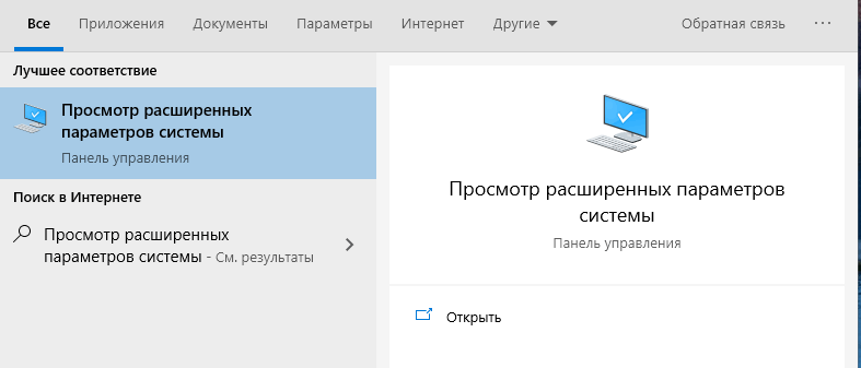 Затем откройте меню «Пуск», найдите «Просмотр расширенных параметров системы» и откройте их.